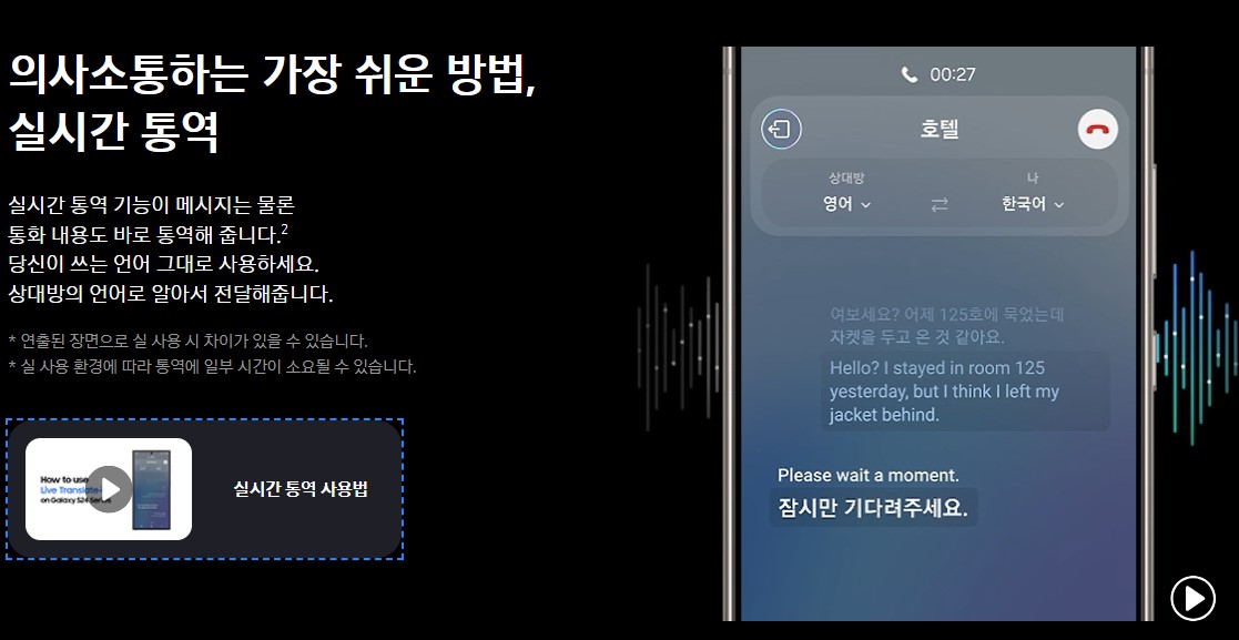- Live Translate 기능으로 사용자 간 전화 통화 시, 실시간으로 양방향 통역 서비스를 제공하고 언어의 제약이 없습니다.