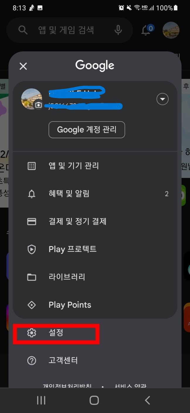 - 모바일 플레이스토어 내 계정으로 이동합니다.
