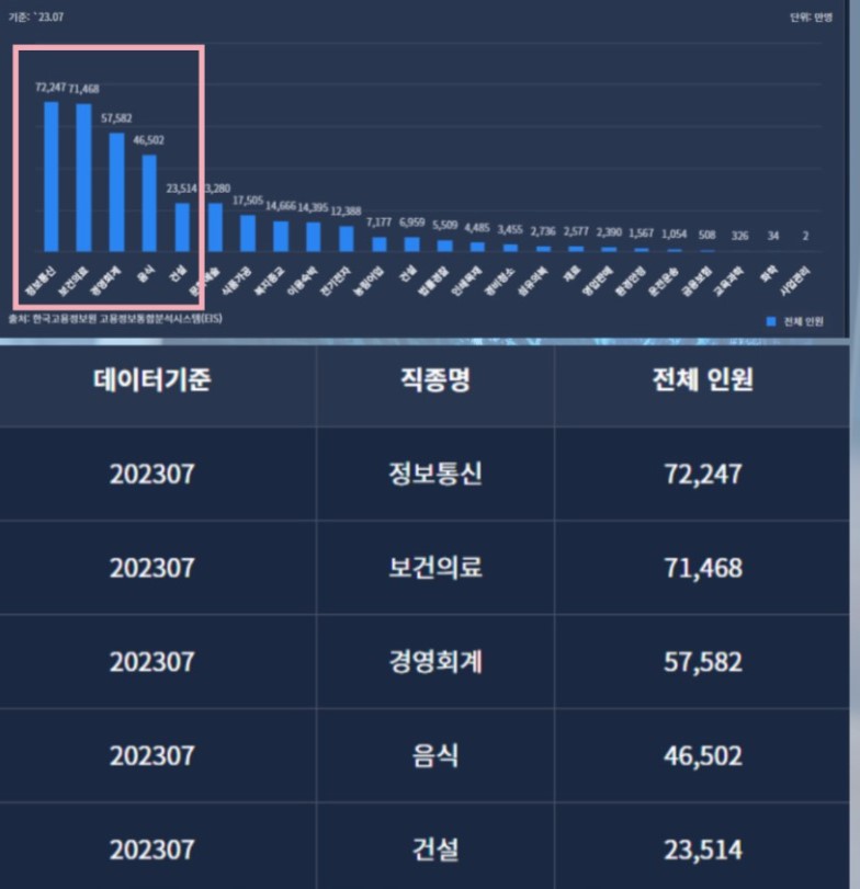 - 직업 : 인사, 사무, 재무