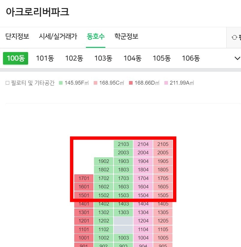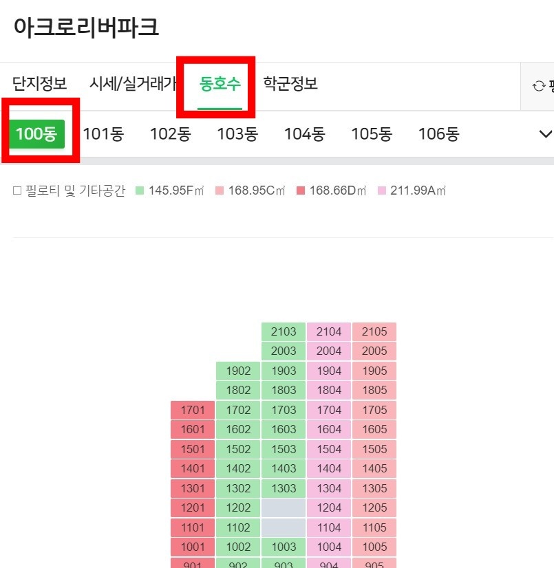 - 원하는 동 클릭해서 색깔별로 구분되어 있어 참고로 확인가능