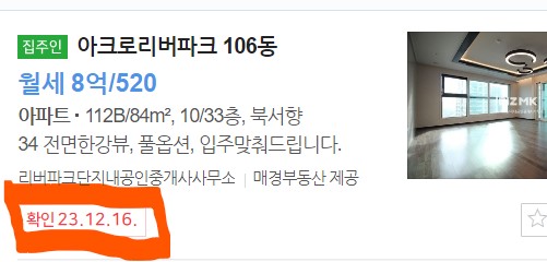- 동호수/ 공시가격은 아파트마다 표시되는 게 다르다.(하지만 아크로리버파크는 공시가격 표시 안되어 있음)
