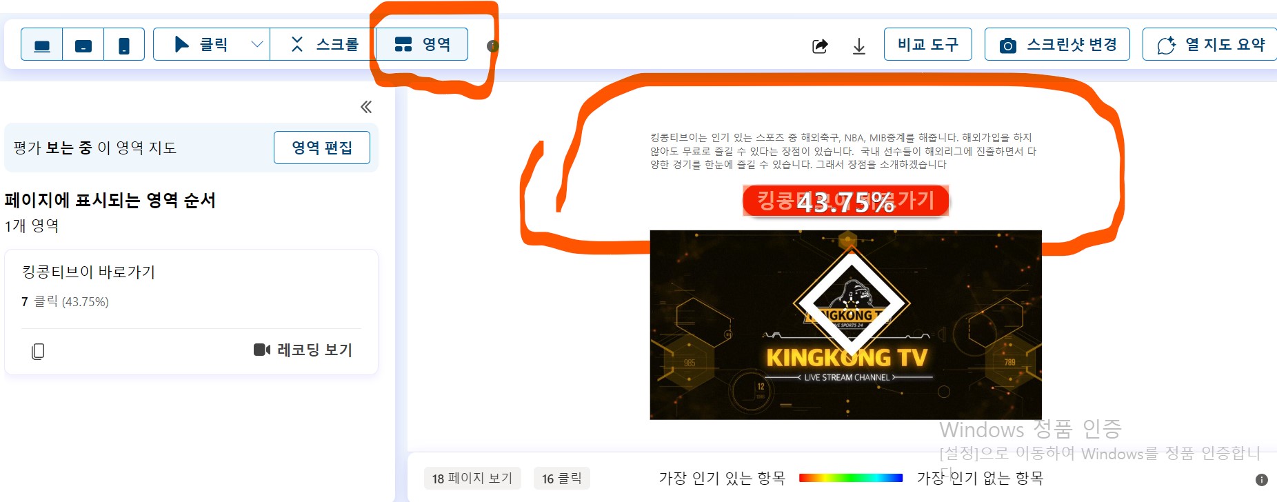 - 사용자가 페이지에서 가장 많이 클릭한 부분을 히트맵으로 볼 수 있습니다.