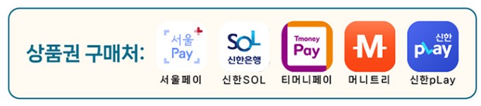 구매처 : 서울 Pay+, 신한 SOL, 신한 pLay, 티머니페이, 머니트리