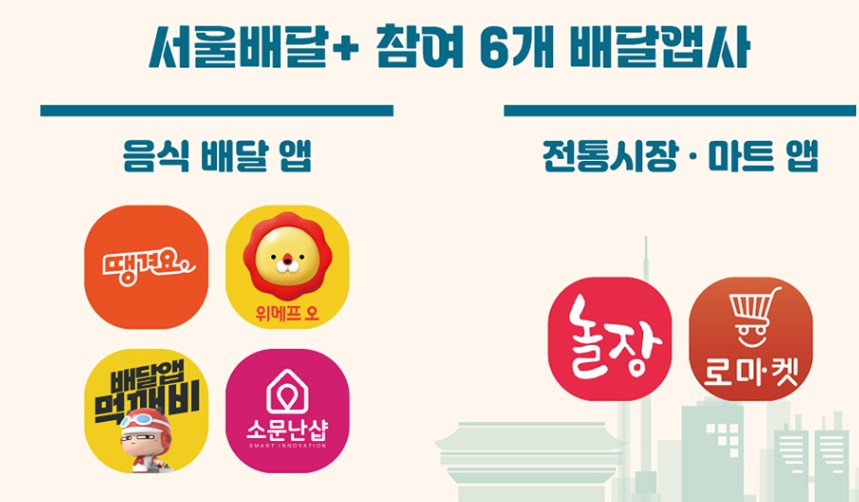 사용처 : 서울배달+ 참여 배달앱 6개사