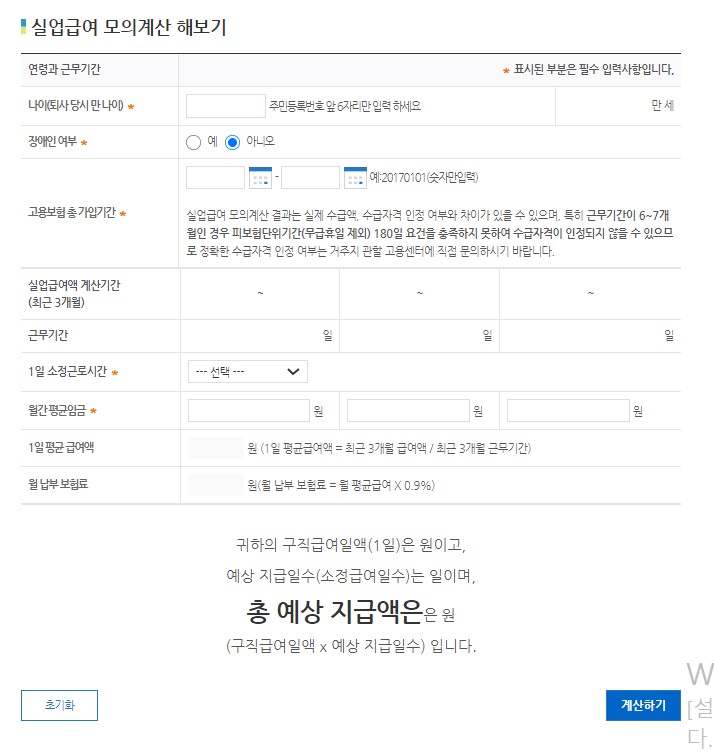 📱 실업급여 모의 계산