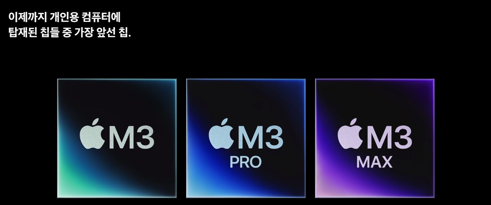 - 칩 종류가 기존 M3, M3 Pro M3 Max 3종류로 구성