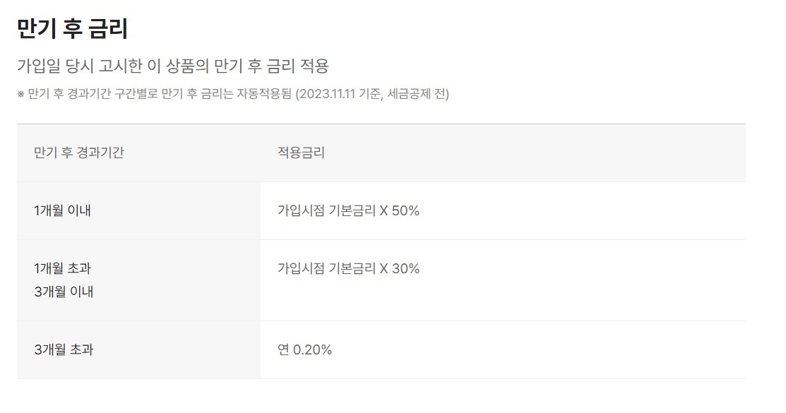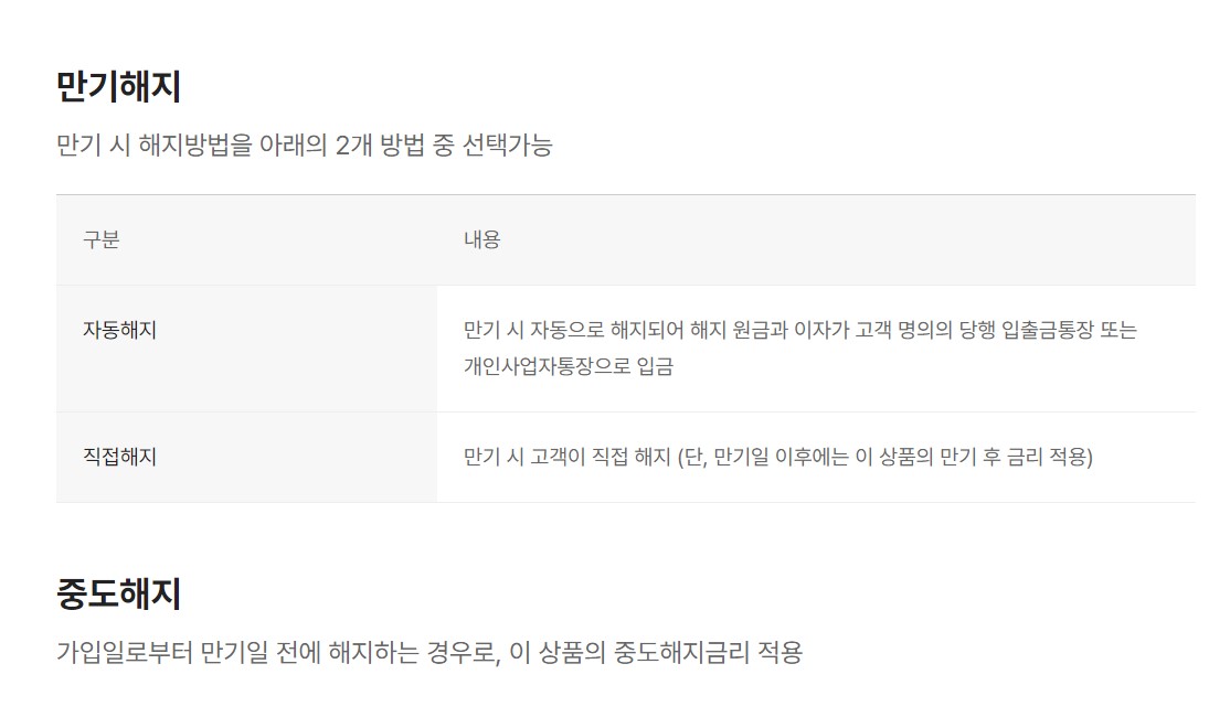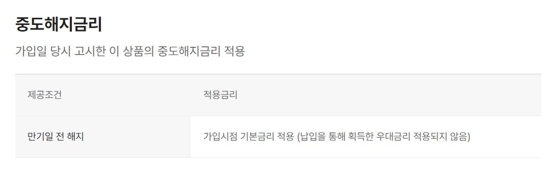 - 만기 전에 중도해지하는 경우 기본금리보다 낮은 중도해지금리가 적용.