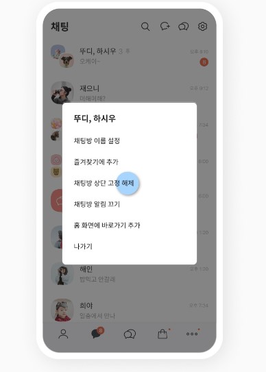 - 자주 쓰는 채팅방이 아래로 떠밀려 내려가지 않도록 목록 제일 위에 고정시켜 두는 방법
