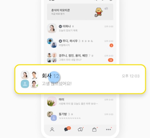 - 연인과의 대화방, 가족 그룹채팅방, 업무용 채팅방 등