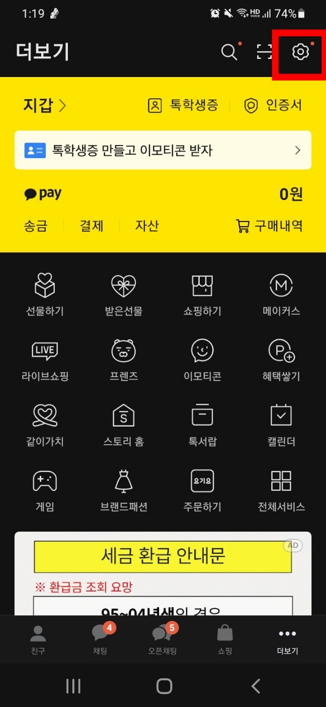 STEP1 👇화면 아래의 점 세 개 메뉴 클릭 후 상단 오른쪽 위 톱니바퀴 모양 클릭👇