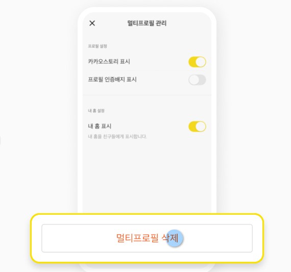 STEP5 👇멀티프로필 화면 오른쪽 상단 '설정' 버튼에서 삭제 가능👇
