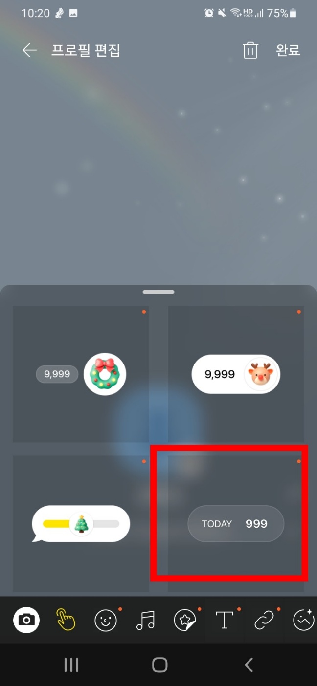 - 카카오톡 친구 목록에서 친구들에게 각기 다른 프로필을 보여줄 수 있는 멀티 프로필을 만든 후 해당 멀티 프로필을 볼 수 있는 대상으로 본인이 궁금하고 호기심이 있는 친구 1명씩을 택하고 공감 스티커 중 방문자 수 위젯을 설정합니다.