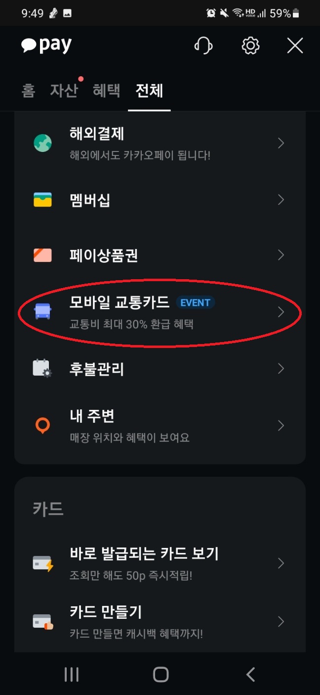 - 모바일 교통카드를 선택 후 선불교통카드를 발급하기