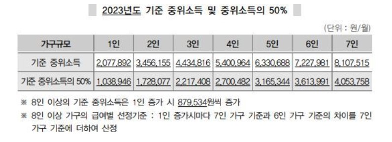 한부모 및 조손가족 : 2023년 기준 중위소득 60% 이하
