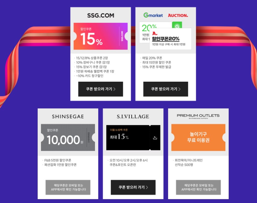 ※ 신세계 & Premium outlets(모바일 또는 API에서 확인 가능)