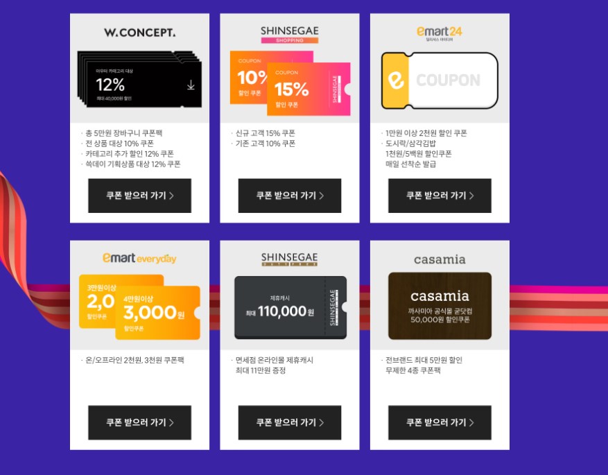 - 전 브랜드 최대 5만원 할인 무제한 4종 쿠폰팩, 11.10 ~ 19