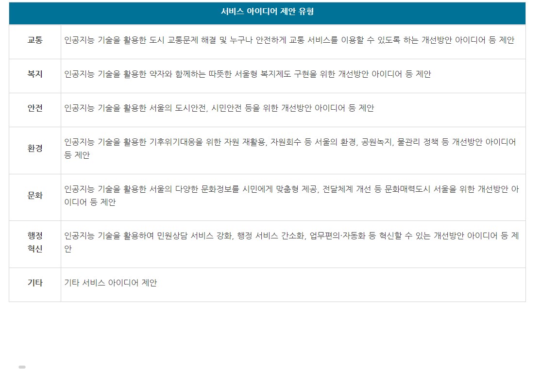 - 공모명 : 서울시 인공지능(AI) 아이디어 챌린지