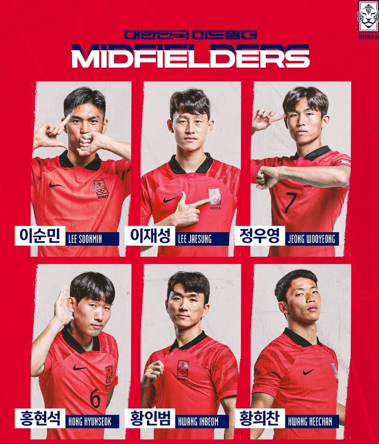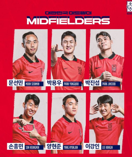 - 미드필더는 총 12명으로 선발명단에는 4 ~ 5명 출전합니다.