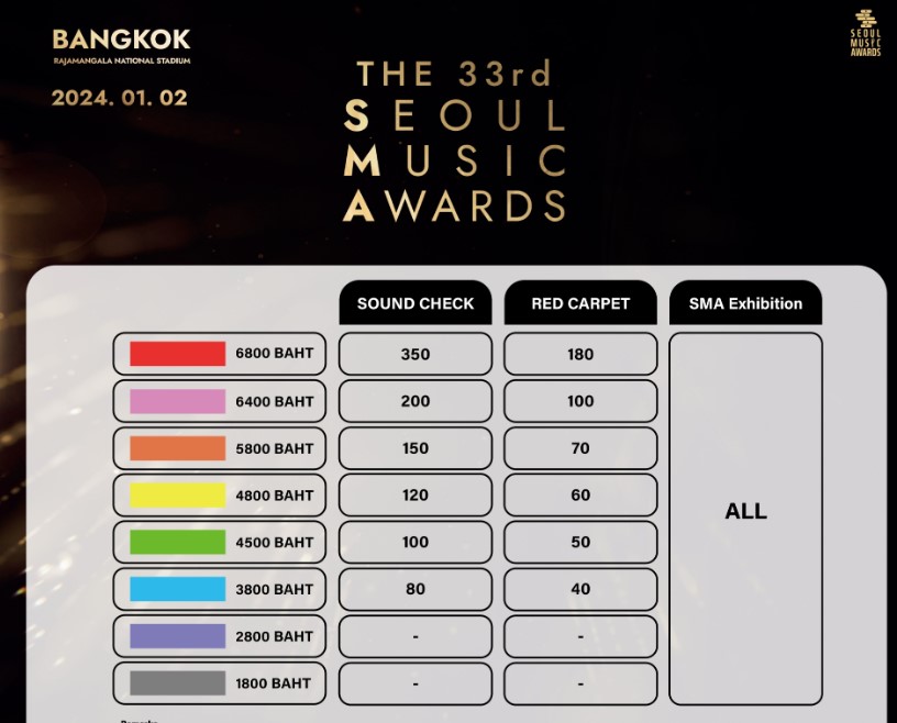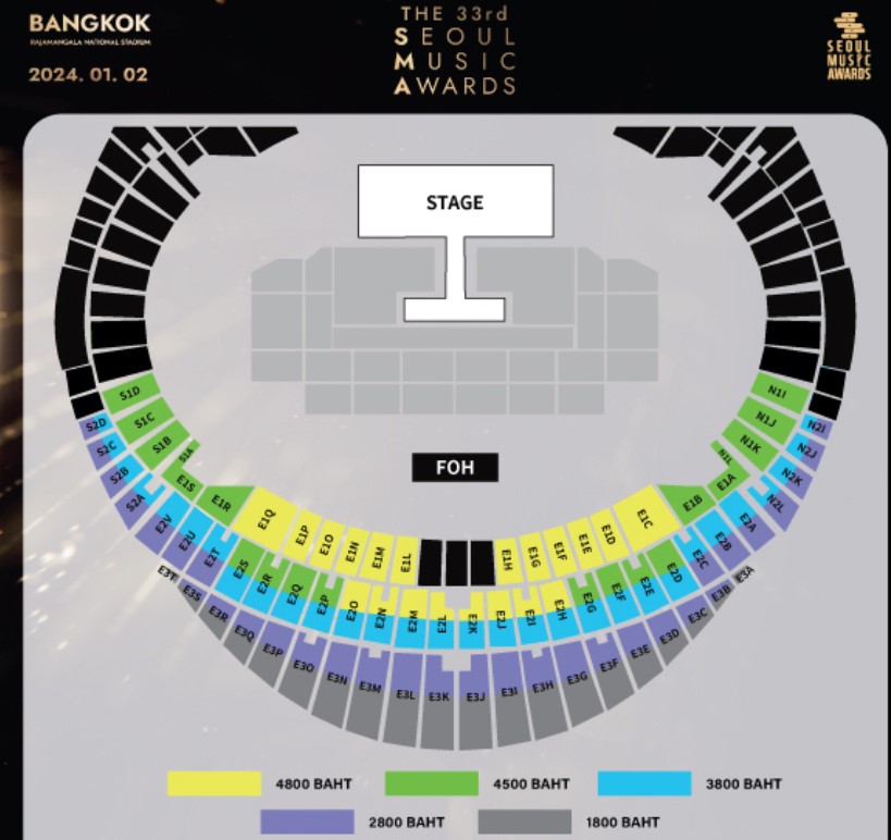 - 스테이지와 가장 가까운 좌석은 6,800밧으로, 1밧당 약 37원 정도